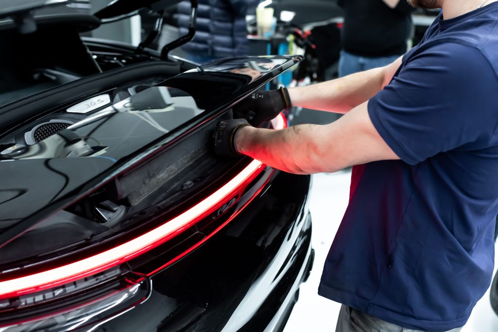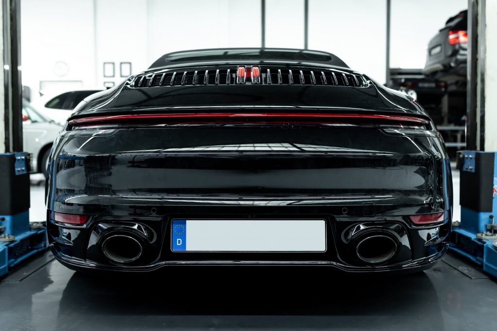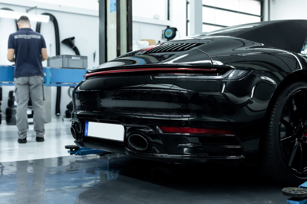 Bedauerlicherweise konnte dieser 992 in seiner ursprünglichen Werkkonfiguration keine lackierten Anbauteile aufweisen. Allerdings legt unser Kunde großen Wert auf die ästhetische Erscheinung seines Fahrzeugs, weshalb er sich entschlossen hat, sämtliche matte Kunststoffanbauteile passend zur Wagenfarbe lackieren zu lassen. Dieser Schritt erforderte eine umfassende Demontage des Fahrzeugs sowie die sorgfältige Isolierung der zu lackierenden Teile, um sie für die Lackierung vorzubereiten. Das Ergebnis ist eine erhebliche Aufwertung der Fahrzeugoptik, die nun einen hochwertigeren Eindruck vermittelt. Darüber hinaus gestaltet sich die Pflege der lackierten Bauteile nun wesentlich einfacher und effizienter.