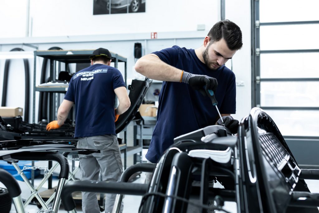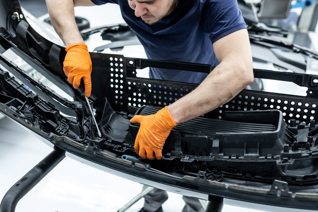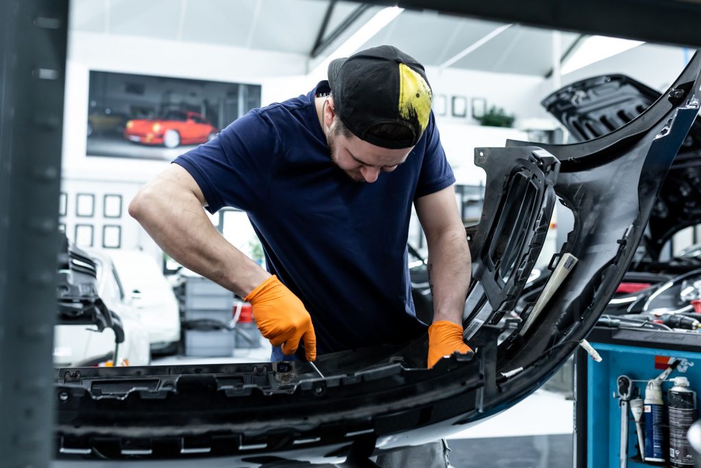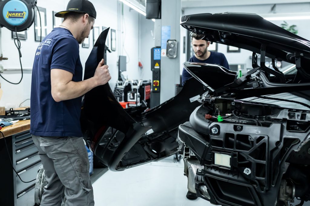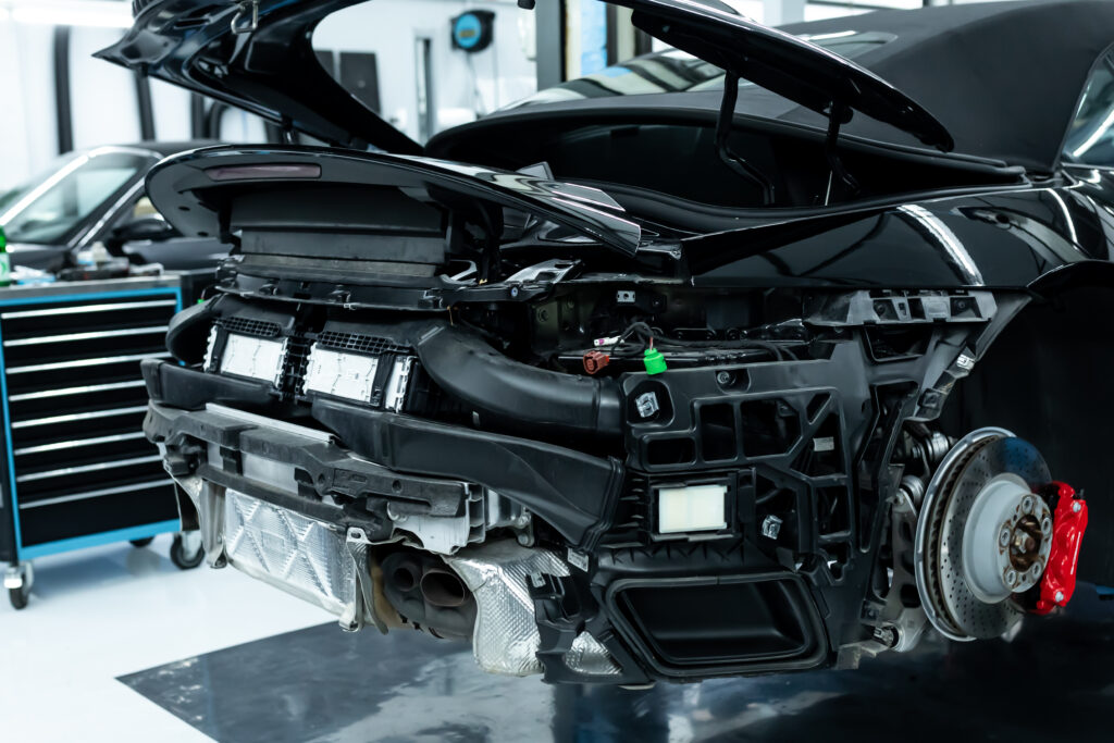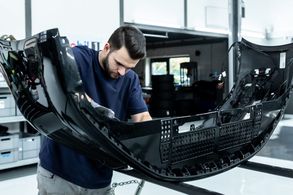 Im nächsten Schritt haben wir uns den vorderen und hinteren Stoßfängerverkleidungen gewidmet. Diese wurden vorsichtig demontiert und anschließend in ihre Einzelteile zerlegt, um die unlackierten Teile zu isolieren. Die Bug- und Heckverkleidungen wurden sicher eingelagert, um später wieder sorgfältig montiert zu werden.