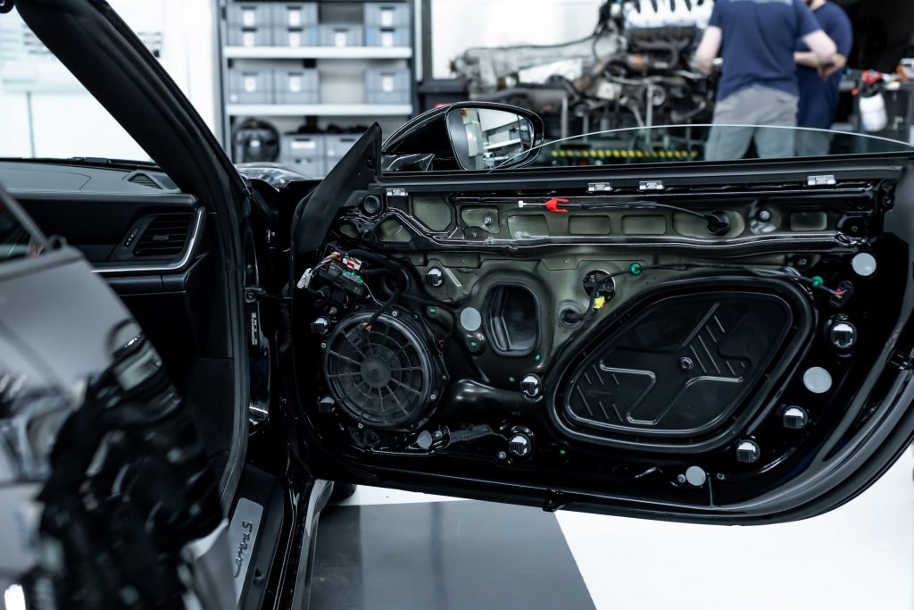 Wir haben uns dann den Türverkleidungen zugewandt, um die Spiegelfüße freizulegen. Auch diese wurden auseinandergenommen, um für die Lackierung vorbereitet zu werden.